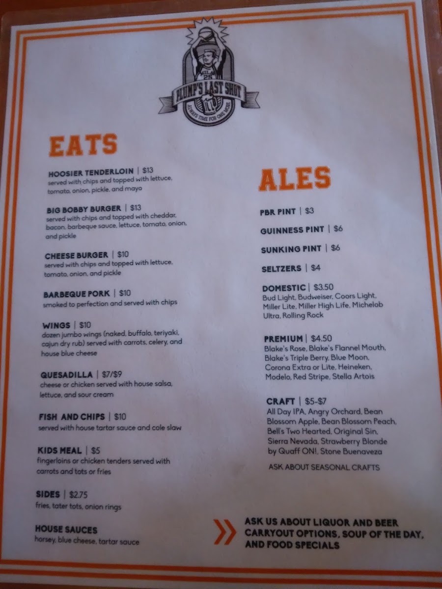 Typical selections include the classic Hoosier Tenderloin Sandwich and a variety of burgers, alongside other casual eats like wings, quesadillas, and fish and chips. These dishes make for reliably good meals to enjoy during afternoon or evening gatherings, often complemented by cold pints of PBR, Guinness, or refreshing seltzers.